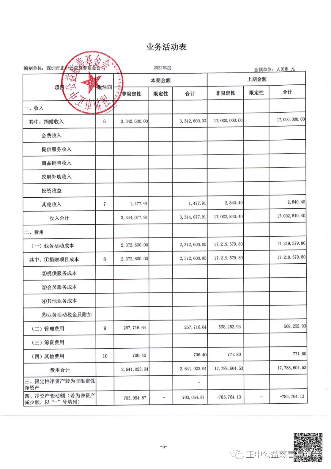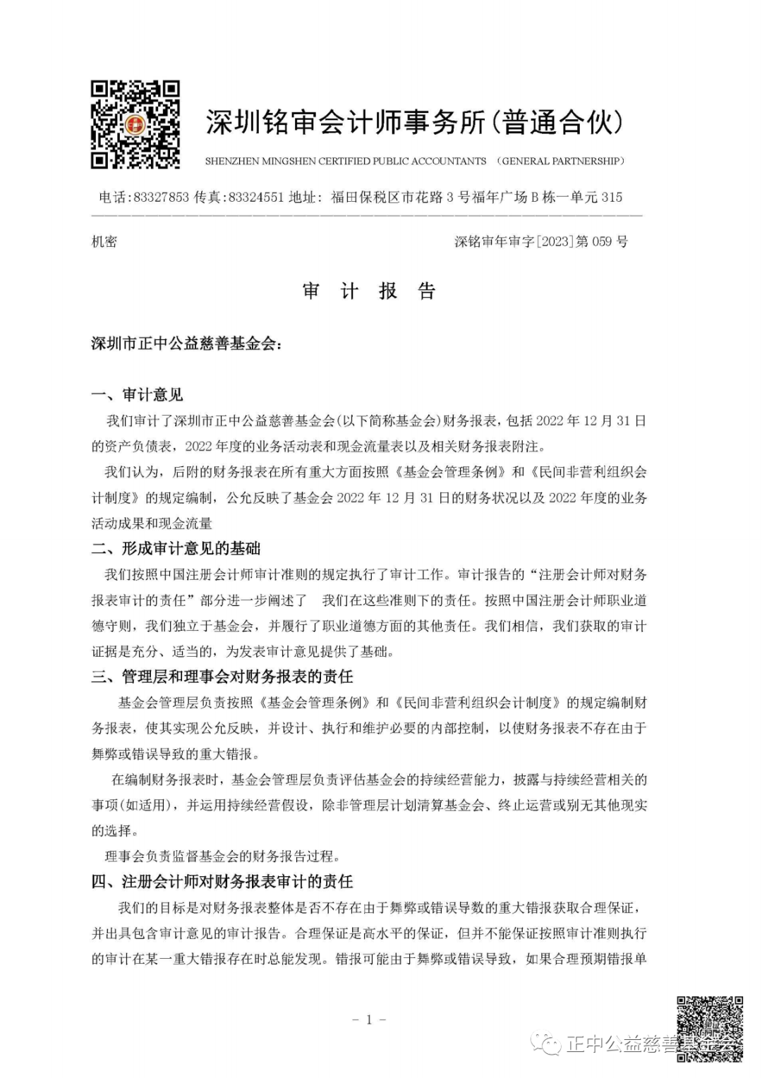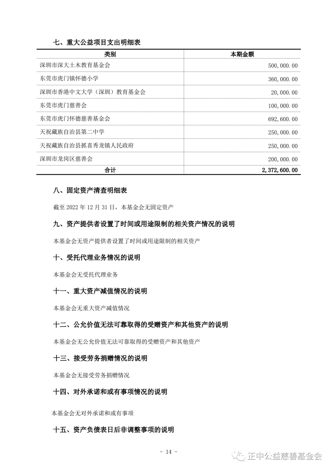深圳市正中公益慈善基金會2022年捐贈收入信息公開