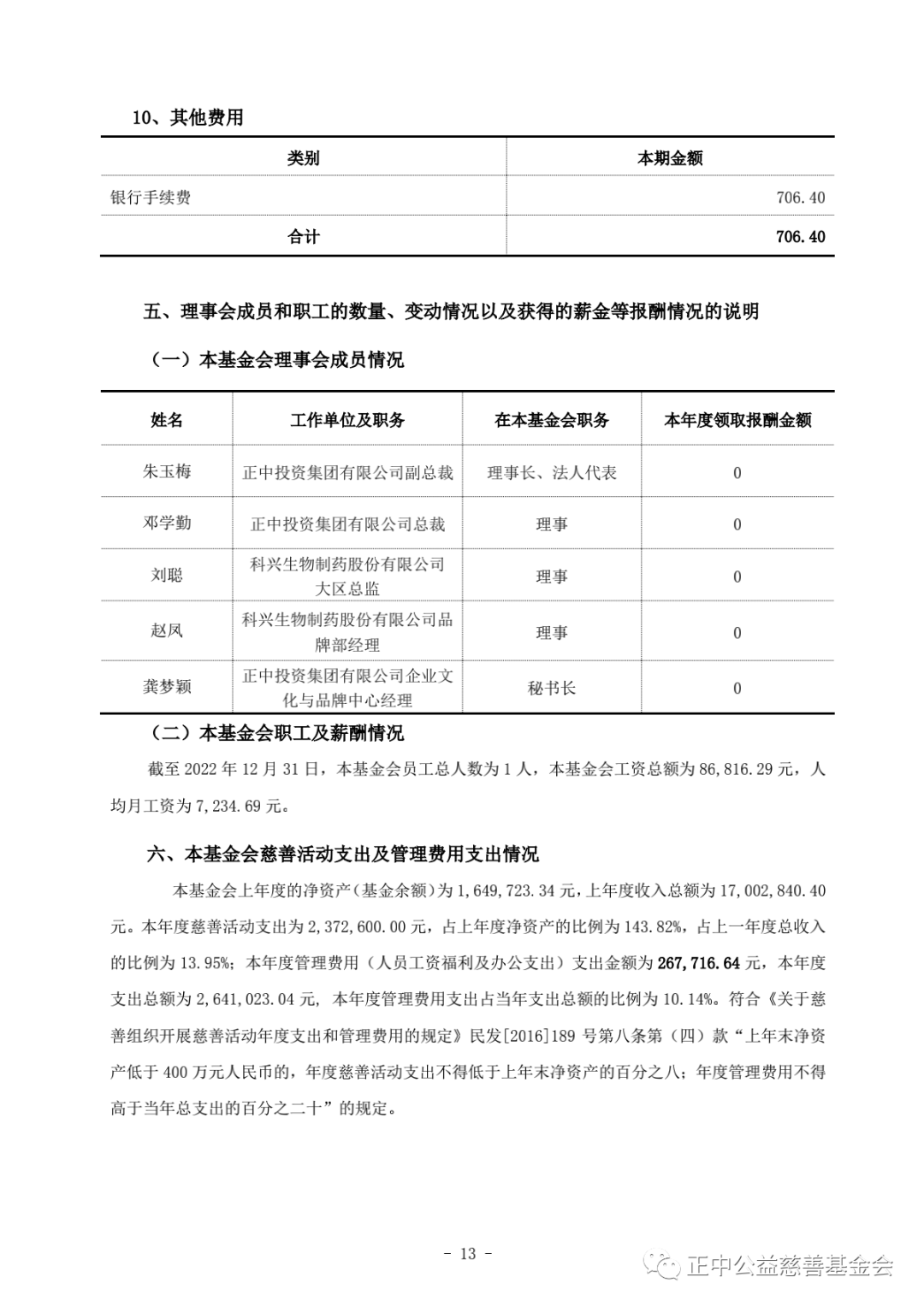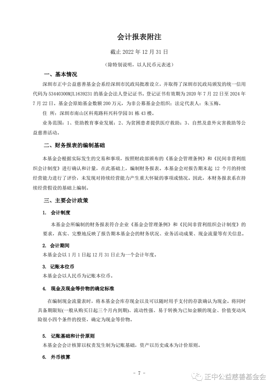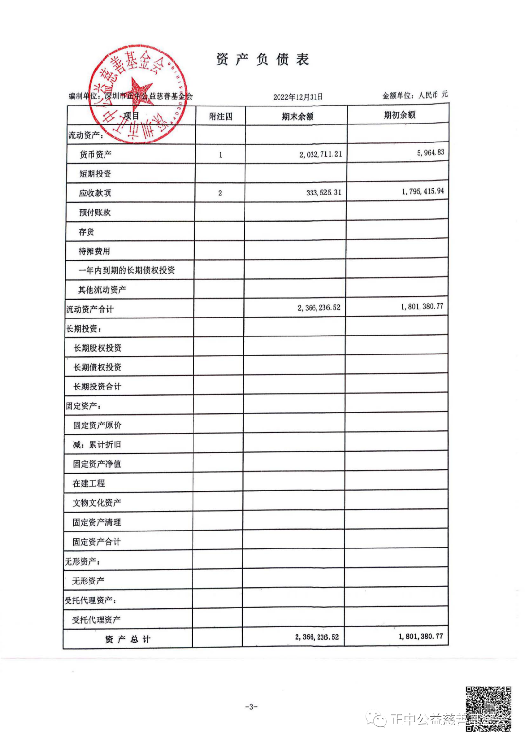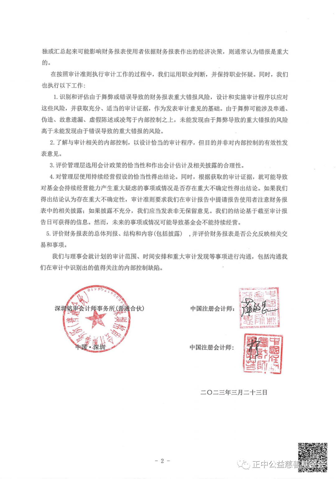 深圳市正中公益慈善基金會2022年捐贈收入信息公開